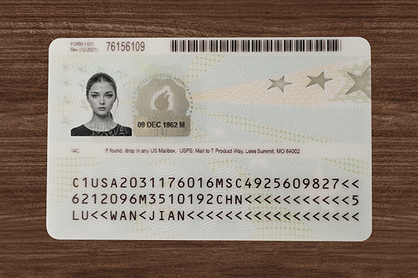 Accurate positioning of all information fields ensures a 1:1 match with the current U.S. Green Card format.